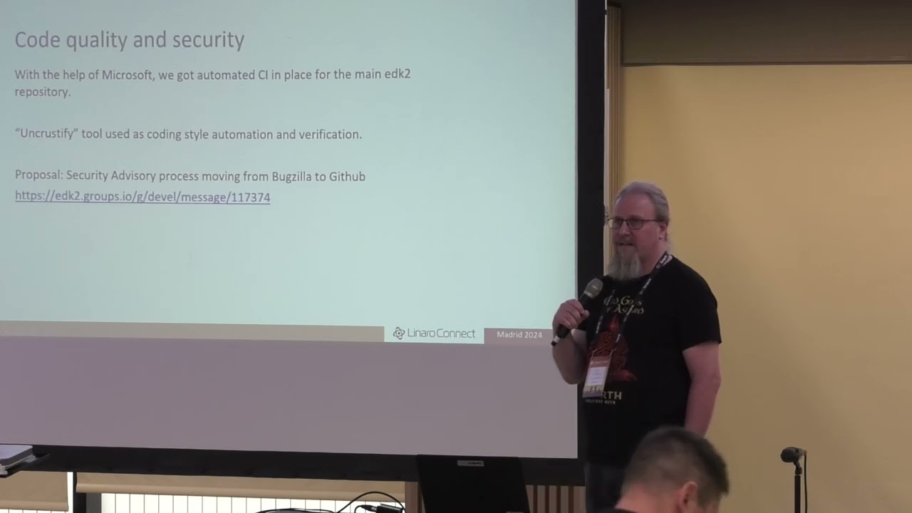 Leif Lindholm provided an introduction and updates on the TianoCore EDK2 project.