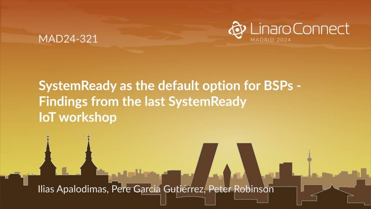 For me, the main topic at Linaro Connect was SystemReady. There was a track for SystemReady IR on the first day and the next days included additional presentations.